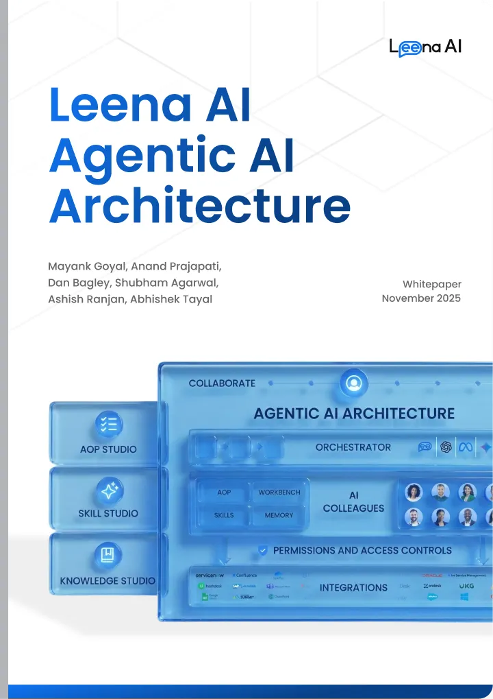 This whitepaper offers a deep dive into Leena AI’s enterprise Agentic AI Architecture, detailing how its layers and components work together to power AI Colleagues with human-like agency and accelerate Agentic AI deployment across enterprise systems.
