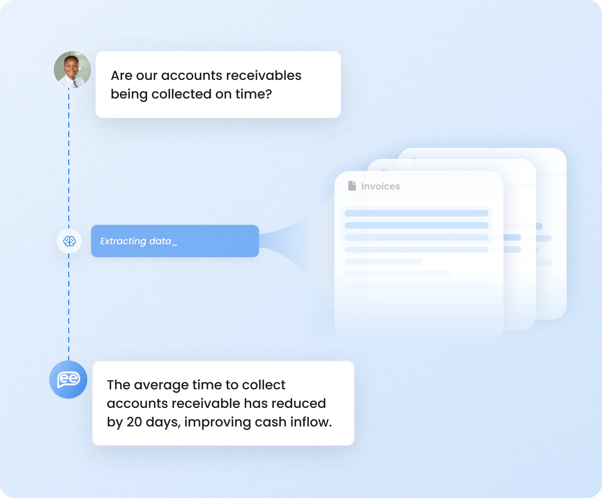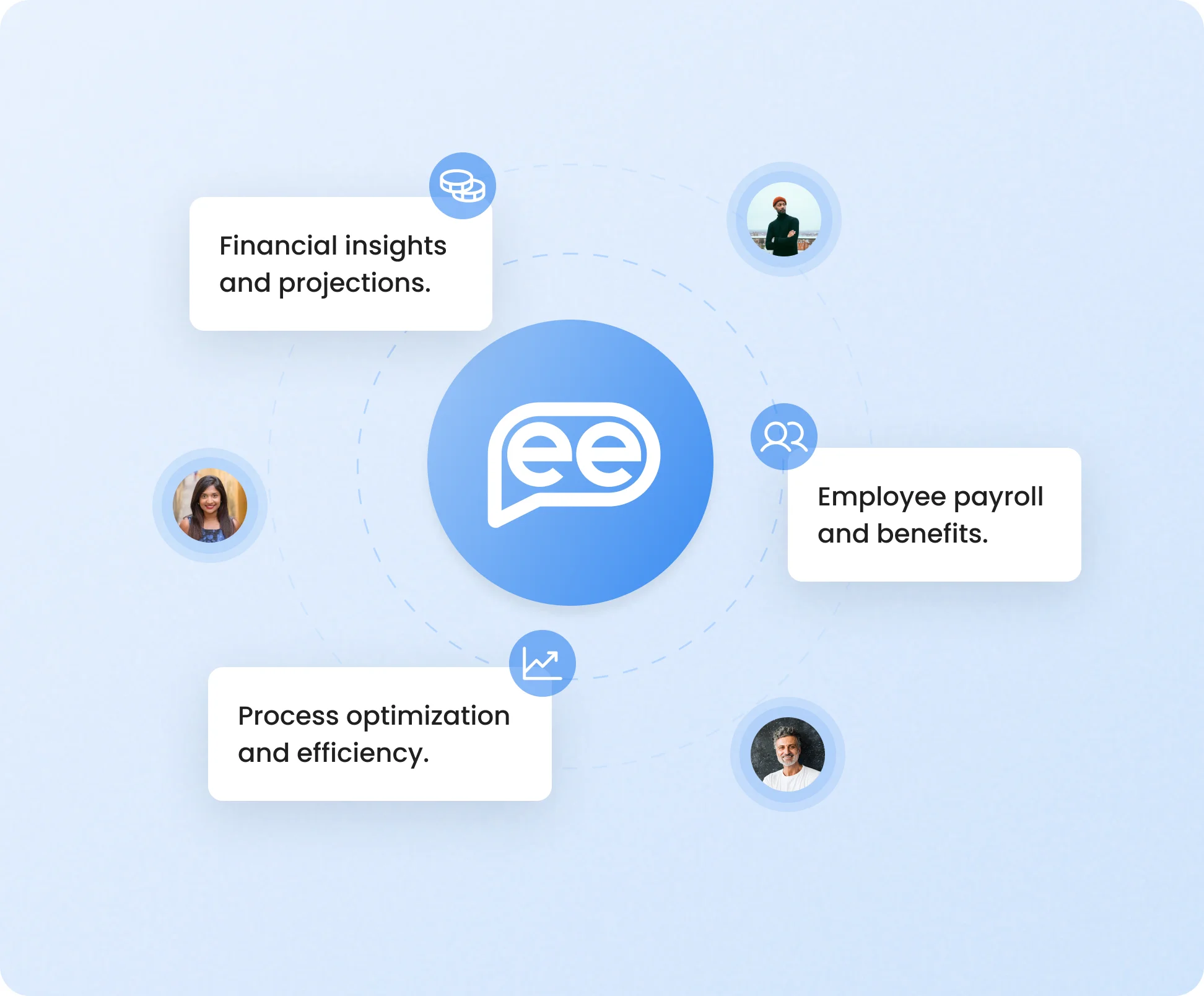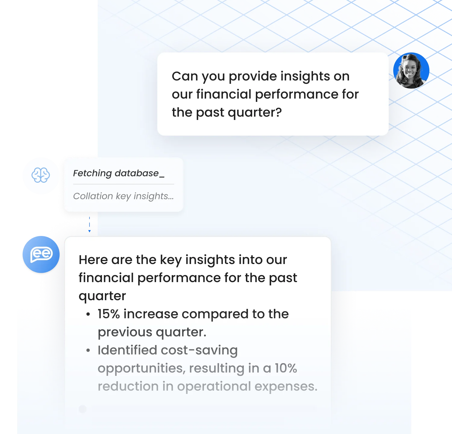 Our virtual assistant can streamline finance collaboration by facilitating communication, sharing financial data, and managing workflows across teams and departments and presenting the employees with the right information in real-time.