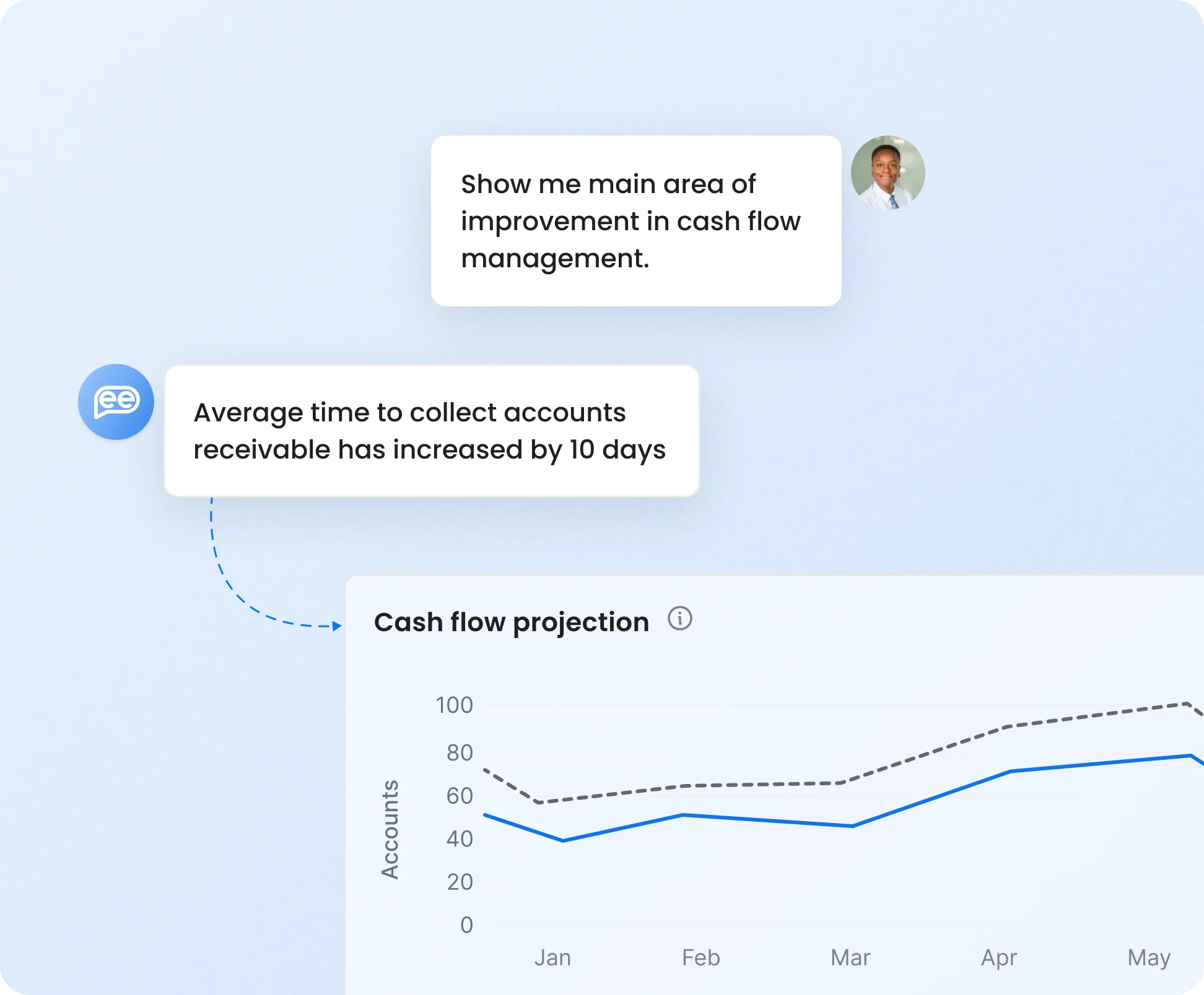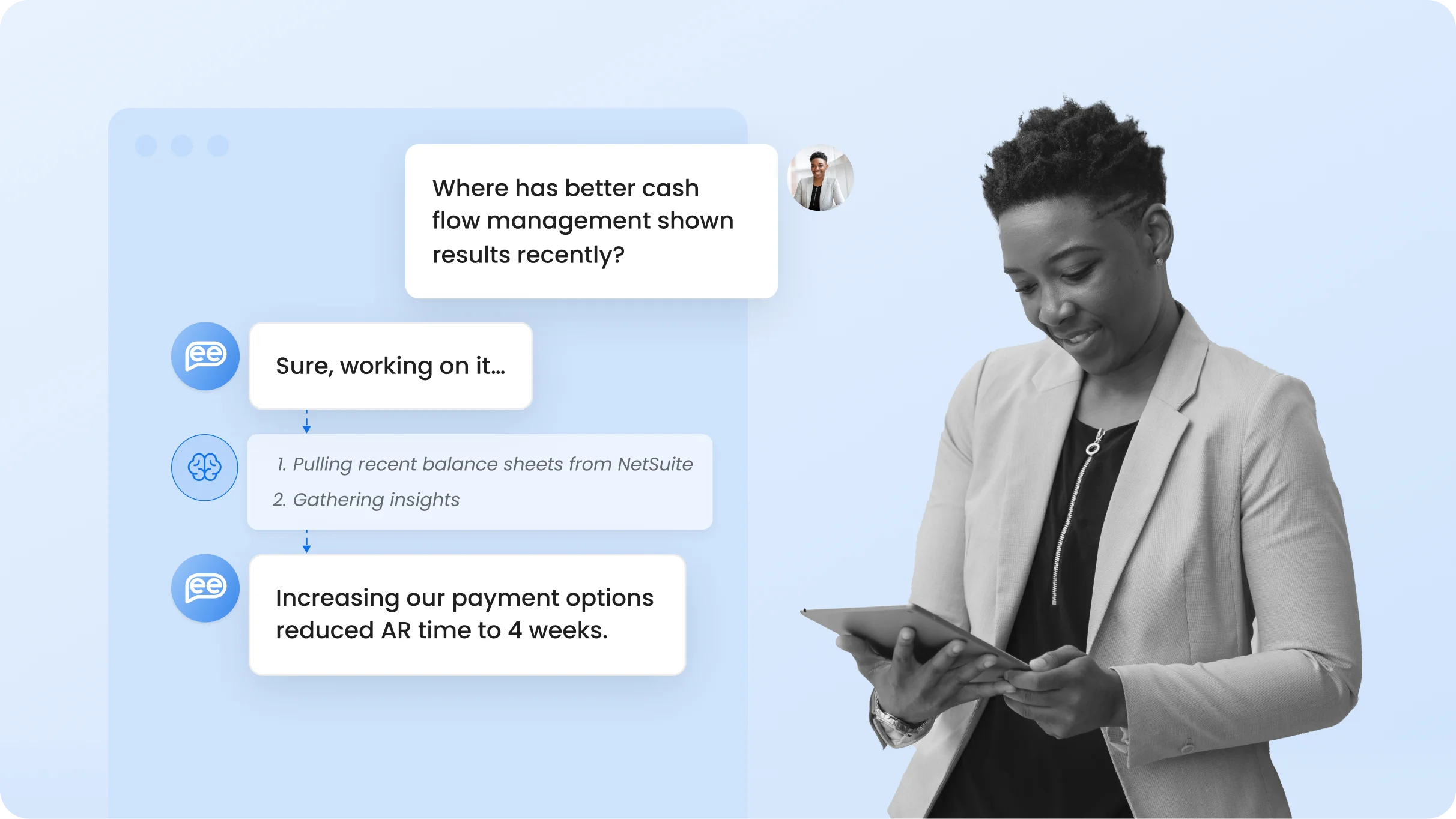 With our virtual assistant, your finance team can improve financial performance by identifying areas of improvement, tracking KPIs, and accessing financial training and coaching resources.