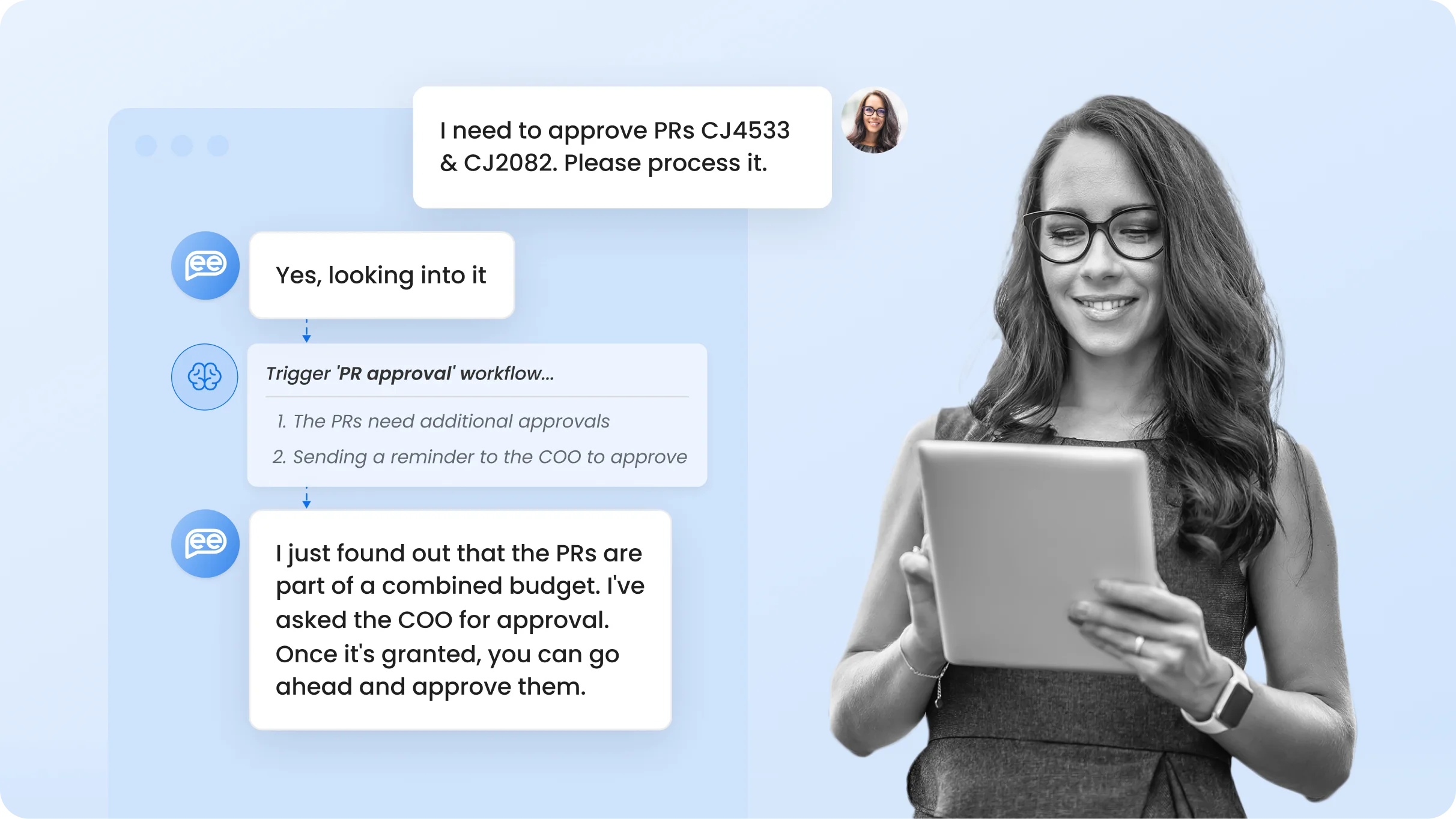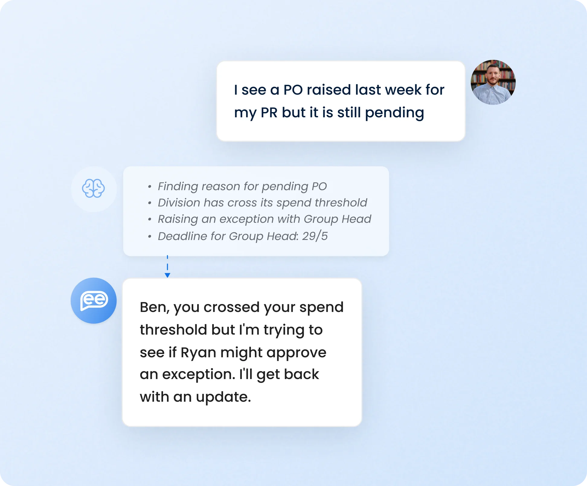 Use Leena AI's Procurement AI Automation to manage and approve outstanding PRs & POs. Check statuses of open requests in real time with just a simple prompt.