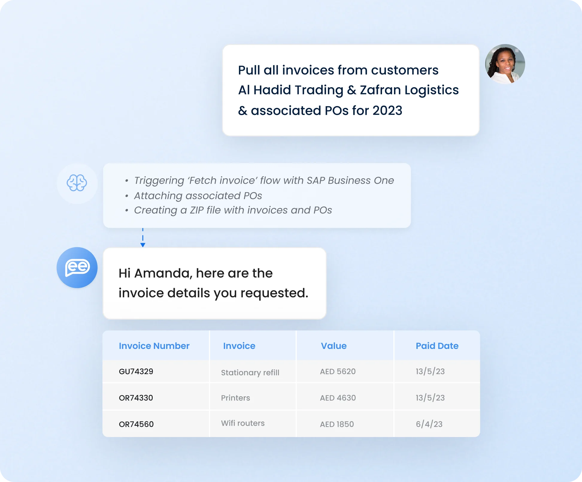 Find all invoice details via Leena AI's intuitive Gen AI agent. Track & resolve mismatches, and approve invoices on time for timely vendor payments