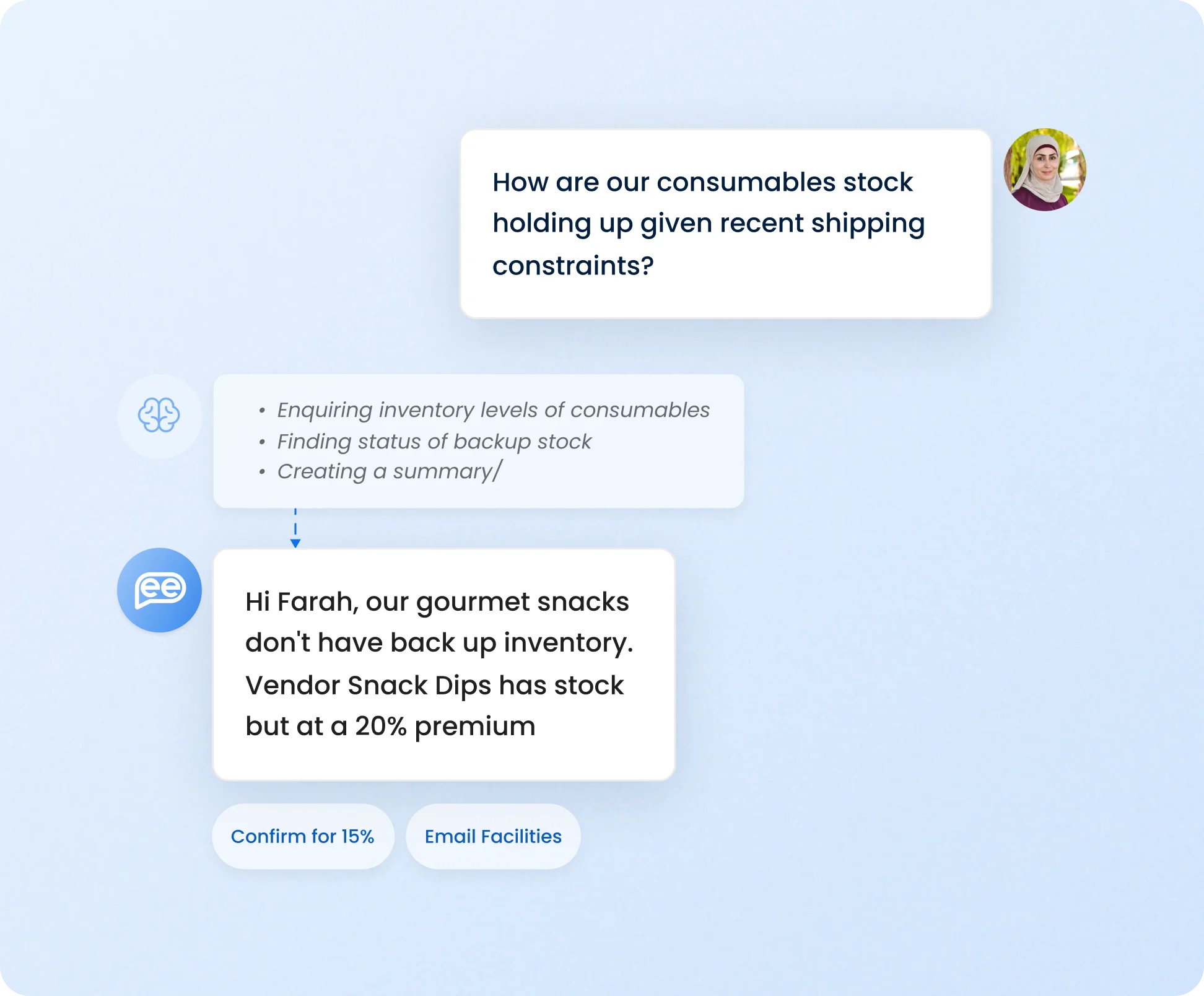 Provide a unified interface to execute procurement actions, status checks, and follow-ups with guaranteed 70% self-service.