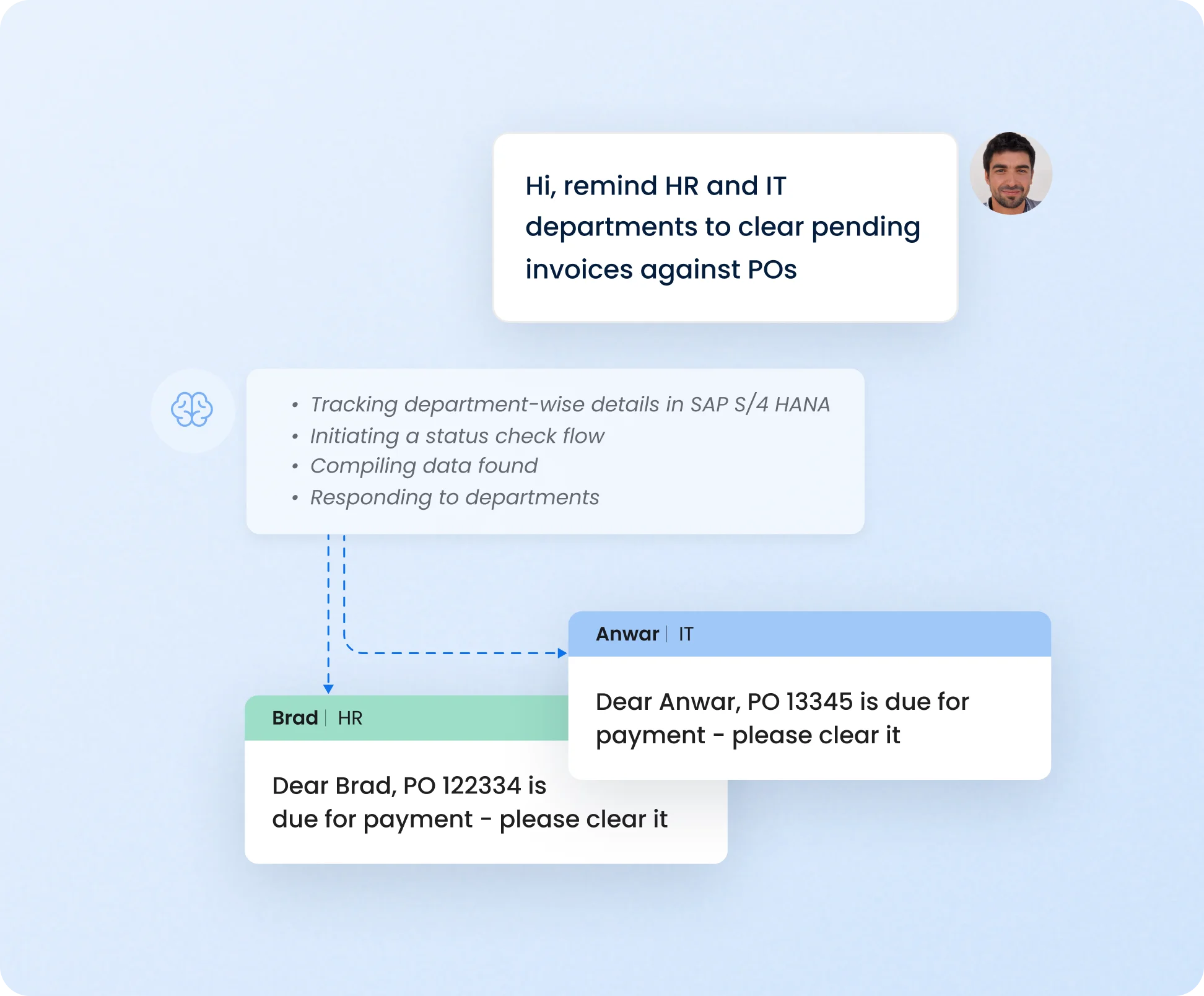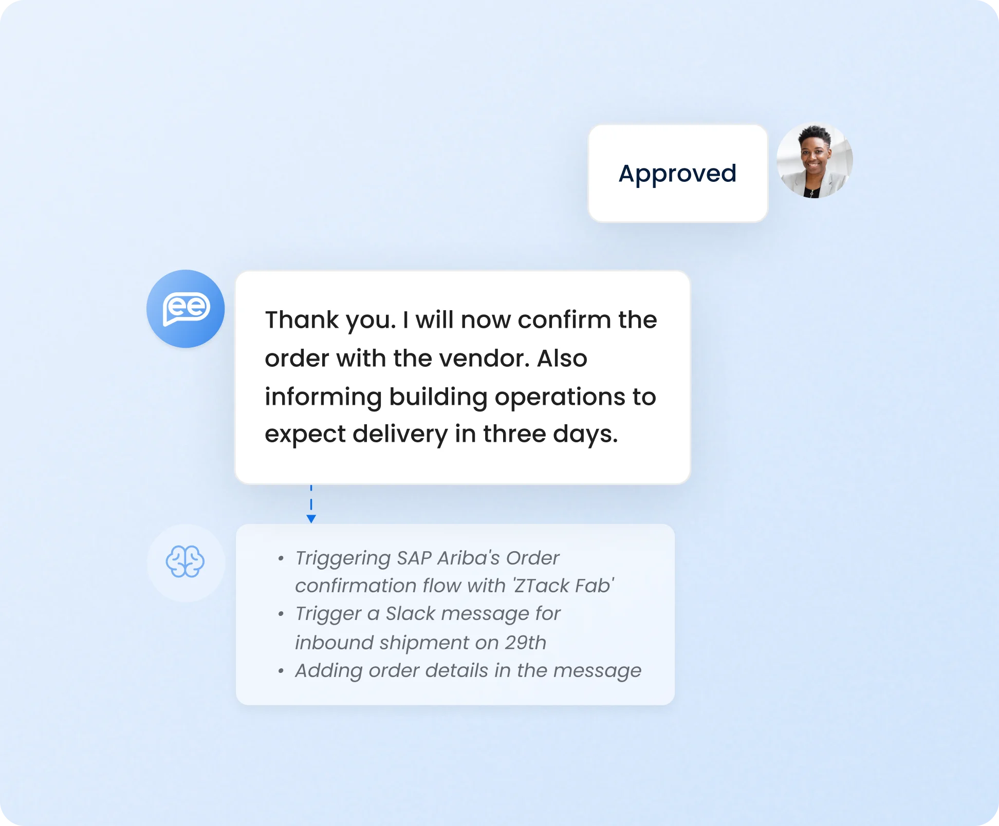Ensure timely payments upon invoice approval, track processing of payments, and inform vendors to quickly dispatch shipments with AI procurement automation